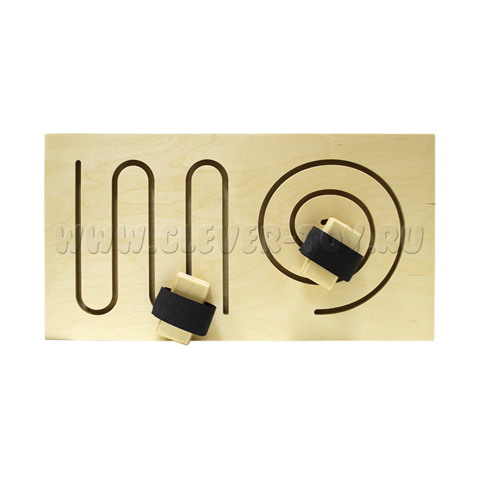 Лабиринт предназначен для развития двигательных навыков. Панель может устанавливаться на столе или крепиться к стене на удобной высоте. Крепления одеваются на руки или на ноги.