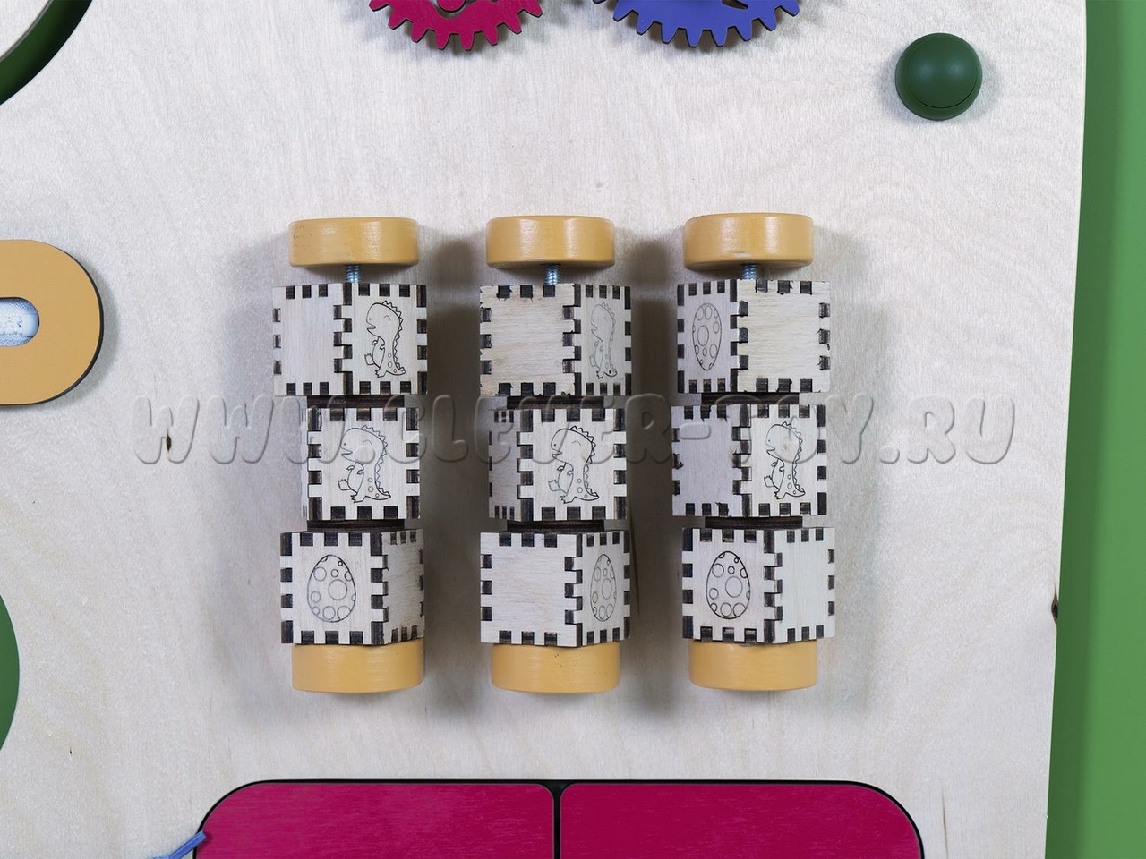 Бизиборд "Крамп" предназначен для детских образовательных учреждений и помогает изучать геометрические фигуры (форму, количество углов, вид, цвет и особенности). Задания составлены по принципу "от простого к сложному". Например, при изучении геометрических фигур можно тренироваться в счёте, определяя количество углов. Также можно рисовать запомнившиеся фигуры или играть в крестики-нолики, вращая фигуры.