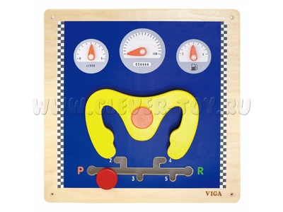 В центральной части панели расположен двигающийся руль. В нижней части панели - коробка переключения передач, которая показывает 5 скоростей.