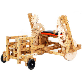 • Конструктор “Дошкольник” - это продвинутая версия конструктора Малыш, предназначенная для детей от 5 до 12 лет. Он включает все модели из набора "Малыш" и добавляет еще более 45 новых и улучшенных моделей. C использованием этого набора можно собрать 6 моделей с запатентованным механизмом привода через вращение ручек и шестерёнок, катапульту, 3 вида подъёмных кранов, новые инерционные модели и множество других. Деревянный конструктор Дошкольник позволяет детям иметь значительно больше простора для творчества и экспериментов. Он также помогает детям понять принцип работы шестерёнок и редукторов.
