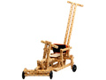 Состав конструктора “Дошкольник” включает 80 брусков из твёрдой уральской берёзы, около 300 болтов и гаек, сидушки с чехлами, колеса, шестерёнки, блок-ролики, ключи для сборки и систему хранения для мелких деталей.