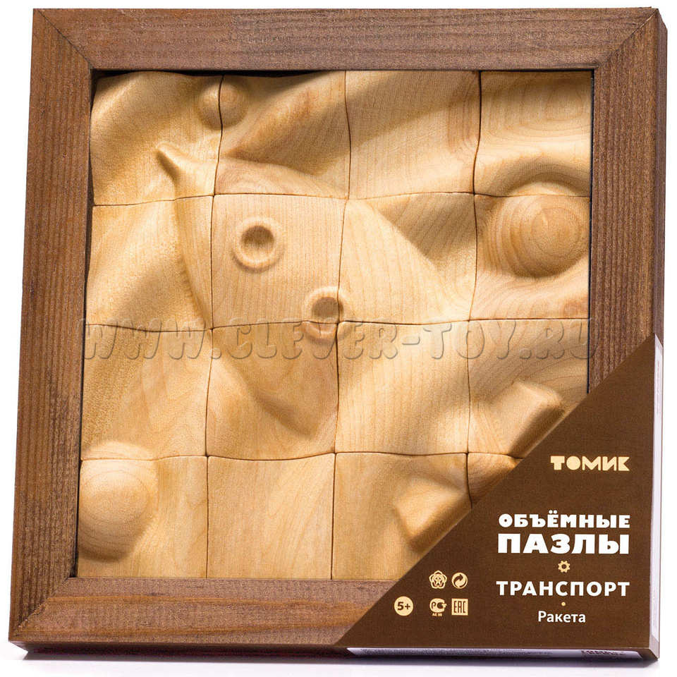 Пазл деревянный объемный "Ракета" (16 деталей)