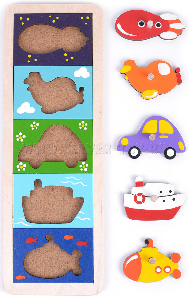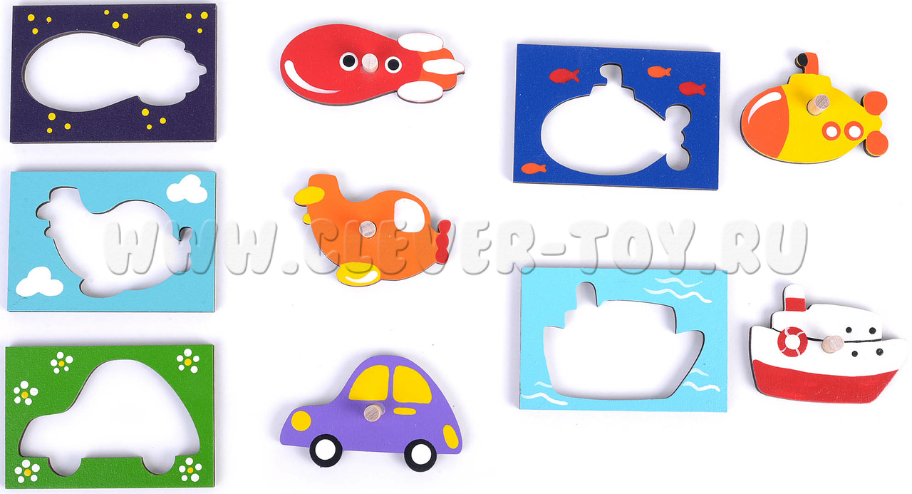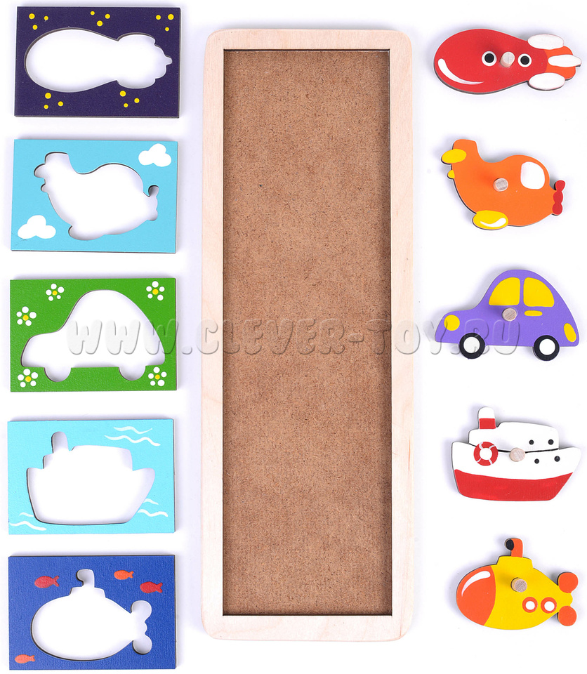 Рамка-вкладыш "Транспорт" состоит из 10 деталей, выполнена из экологически чистых материалов и окрашена безопасными красками на водной основе.