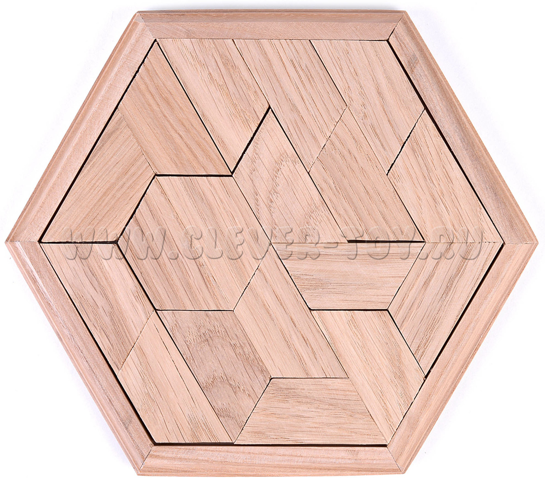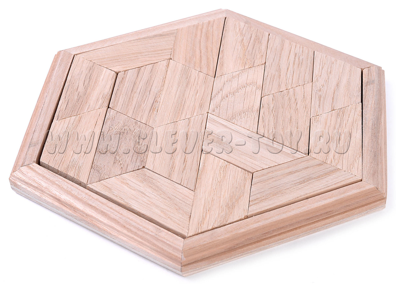Головоломка состоит из 9 элементов и шестигранной коробочки.