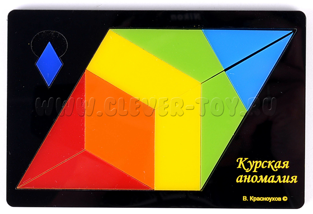 Головоломка состоит из набора игровых элементов и корпуса с ромбовидной нишей. Первые 9 элементов набора легко укладываются в нишу, при этом элементы заполняют практически всю площадь ниши, и для последнего (десятого) элемента места в нише не остается.