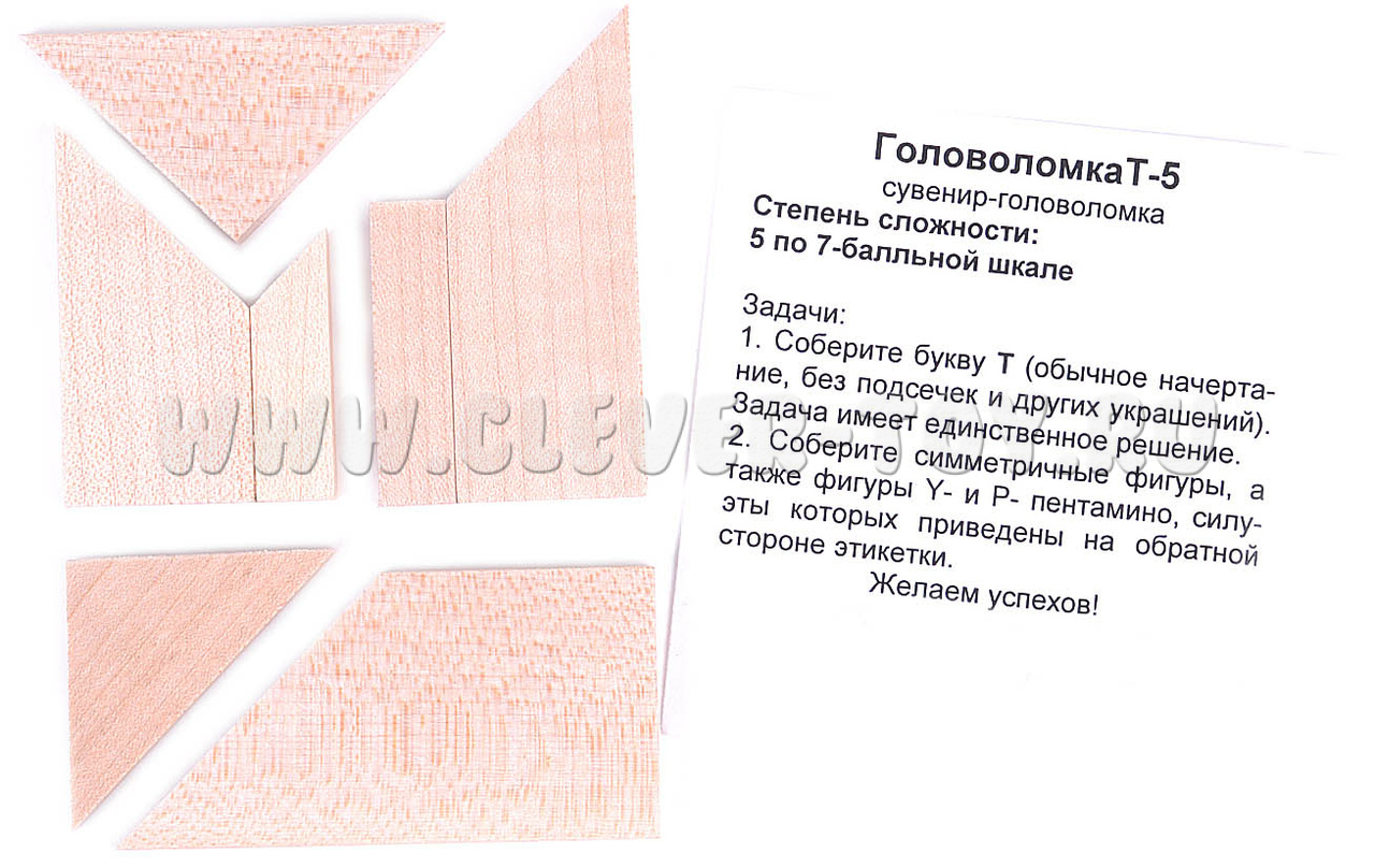 Простая с виду головоломка “Т-5”,на самом деле будет для вас сложной задачкой. Эта головоломка пятого уровня сложности из семи. К тому же, в неё включено много заданий.