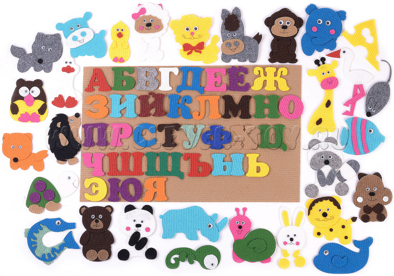 Реалистичные фигурки из современного прочного яркого материала - ковролина - помогут вашему малышу легко усвоить алфавит. В паре с каждой буквой русского алфавита в наборе есть фигурки животных, рыб и птиц, названия которых начинаются на эту букву.