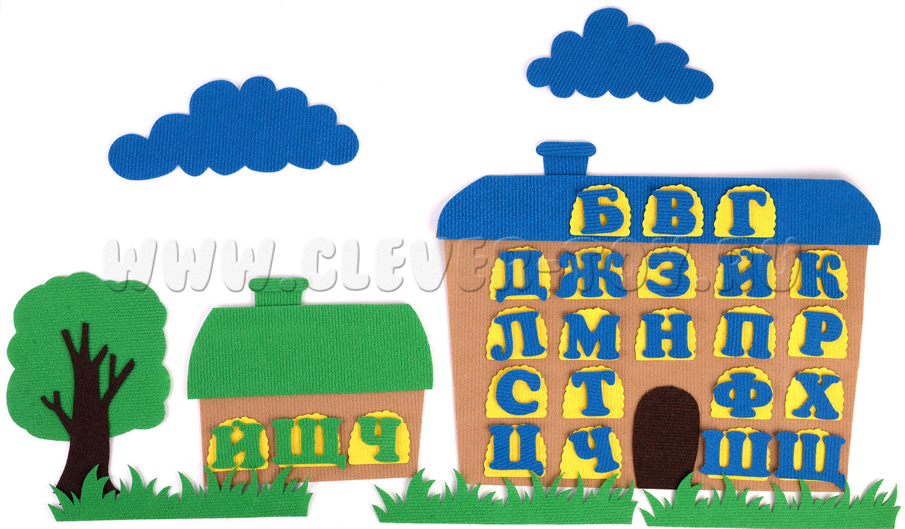 с серой крышей - для беззвучных букв (размер: 15х17 см).