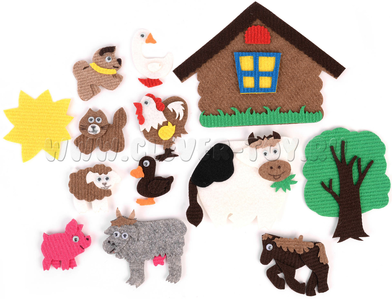 • 10 фигурок животных - собака, лошадь, петух, гусь, утка, свинья, коза, овца, корова, кот,
