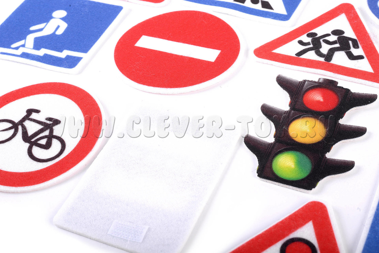 Яркие, мягкие, прочные и долговечные элементы набора «Дорожные знаки» из современного материала – фетра – от ведущего российского производителя игр из фетра и ковролина – компании «LIP-LIP».