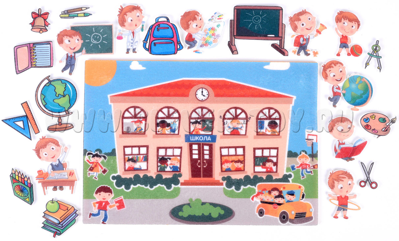 • придумывать сюжетно-ролевые игры на тему «Школа» с помощью фигурок на многоразовых липучках.