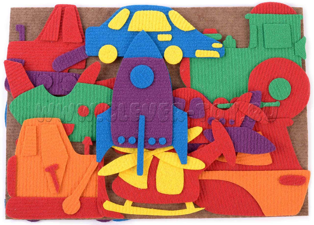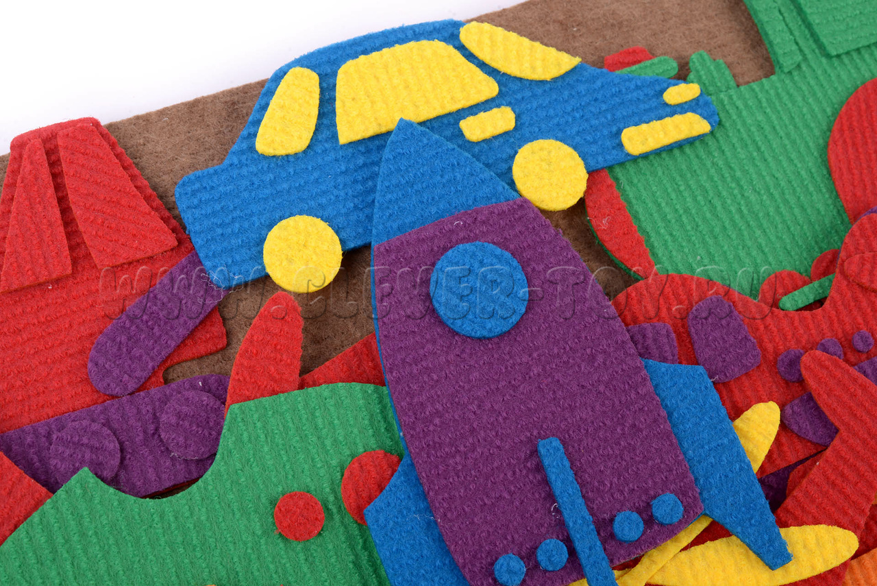 Игры-занятия с ярким ковролиновым набором «Транспорт» увлекут вашего ребёнка и помогут подготовить его к школе. Рекомендован специалистами для дошкольного развития.