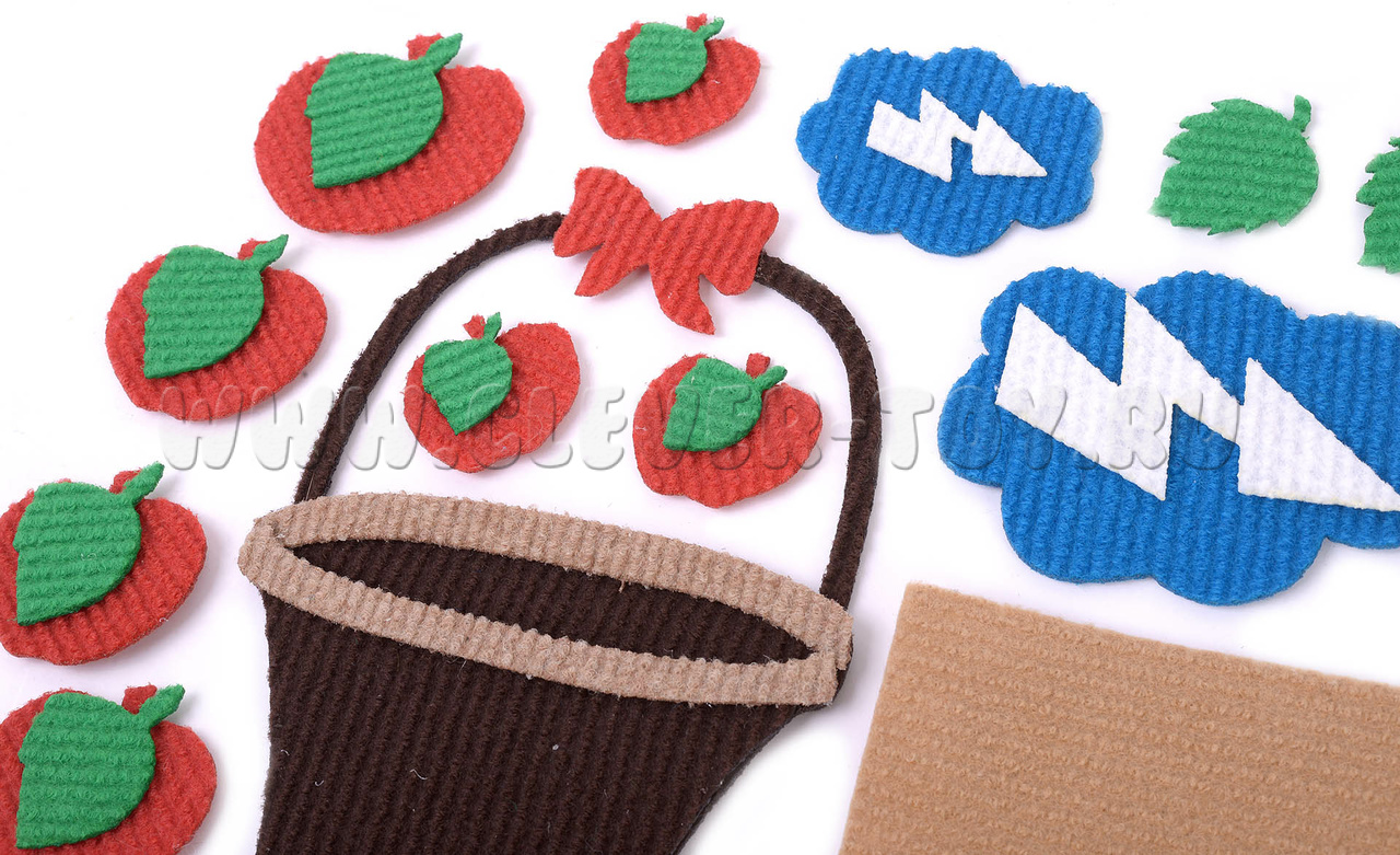 - дерево, солнышко, тучка с молнией, корзинка, ёжик маленького, среднего и большого размера (по три шт. каждого вида);