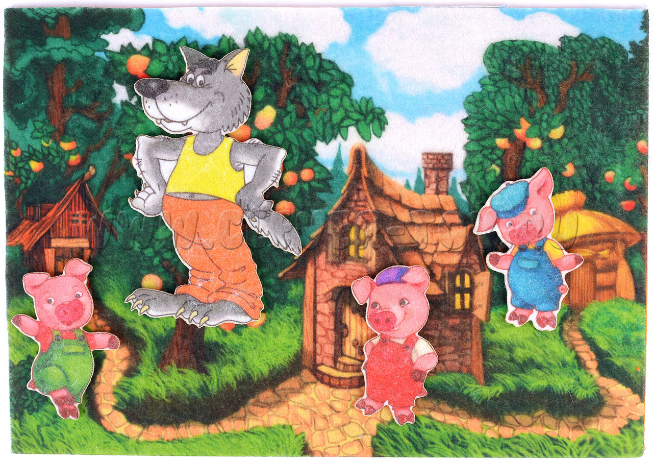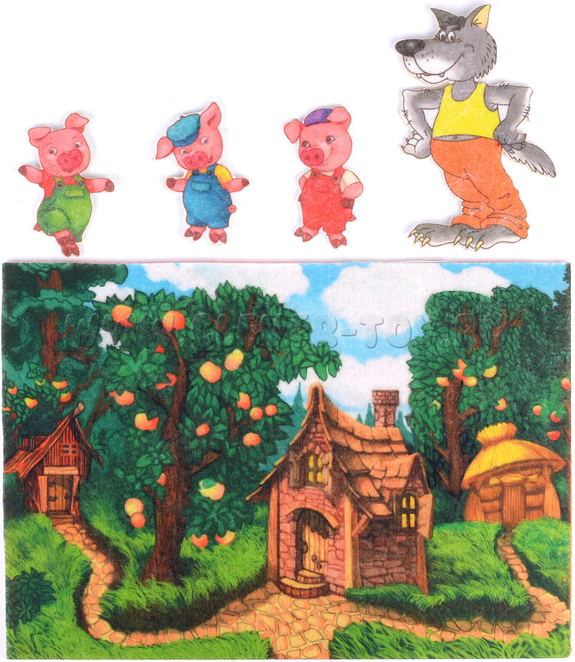Набор Веселых липучек “Три поросенка“ сделан из фетра. В комплекте идет игровое поле и персонажи из сказки. А также есть карман, куда можно убрать игрушки после игры.