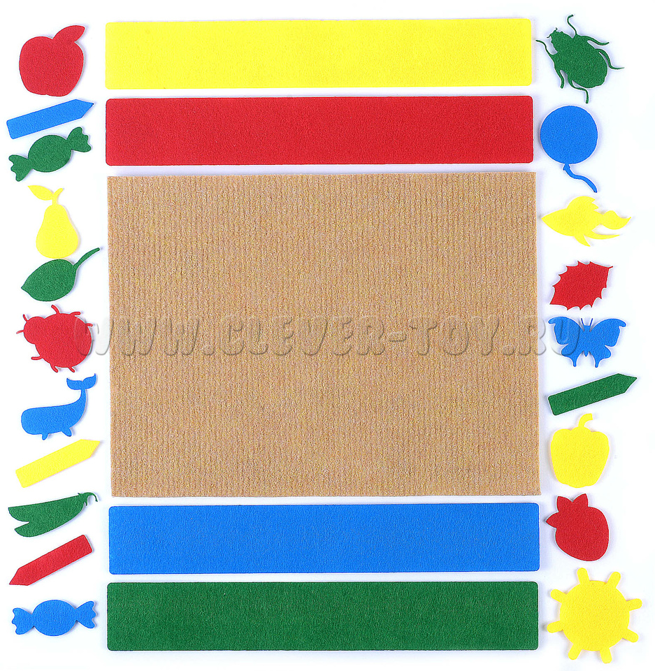 • Набор из 24 деталей (желтые, синие, зеленые, красные полоски и фигурки),