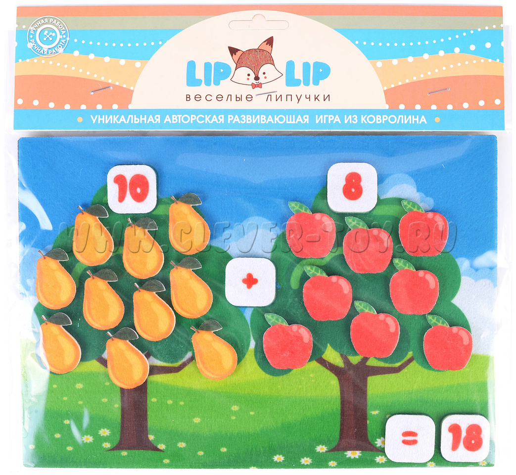 Игра-конструктор “Учимся считать” сделана из фетра, поэтому она мягкая и долговечная. А еще сзади у каждой фигурки есть липучка, с помощью которой можно располагать элементы на игровом поле.