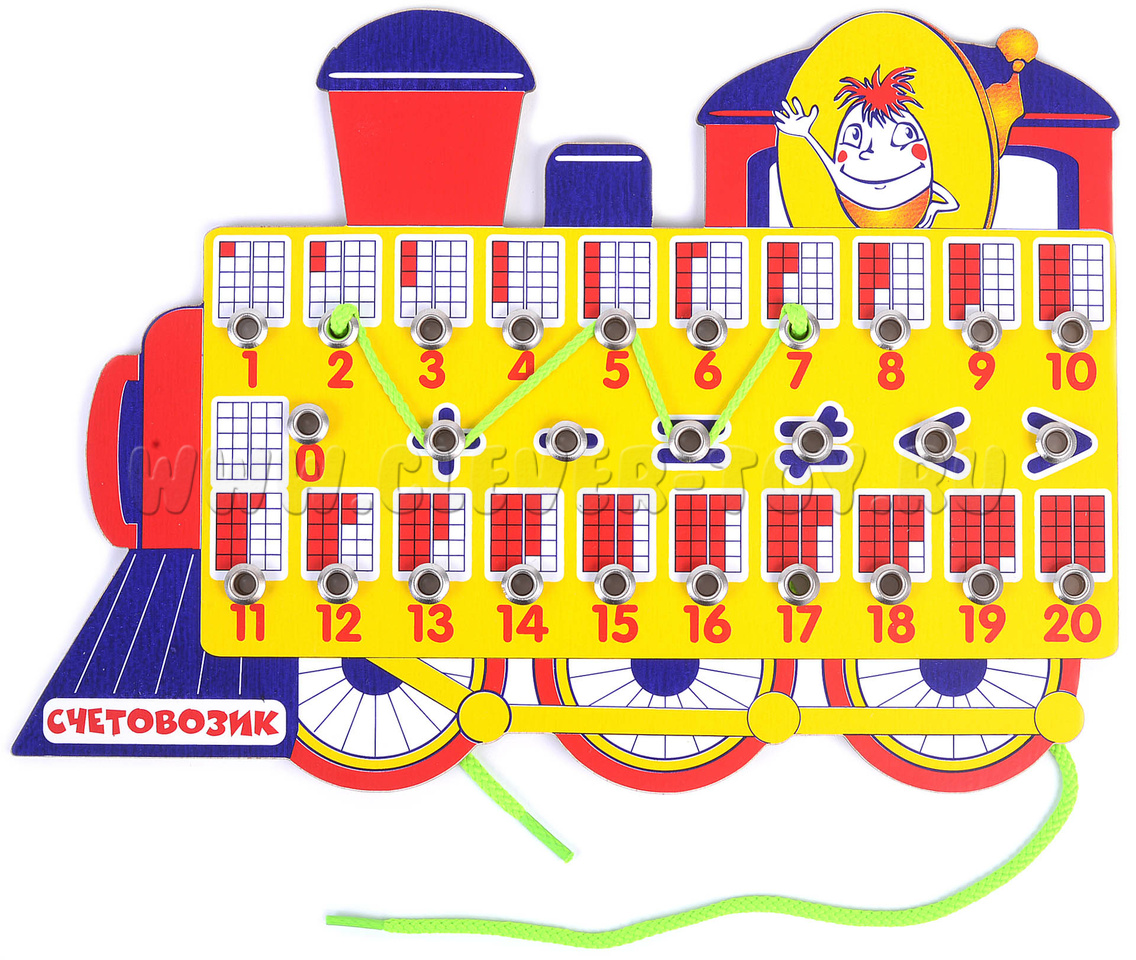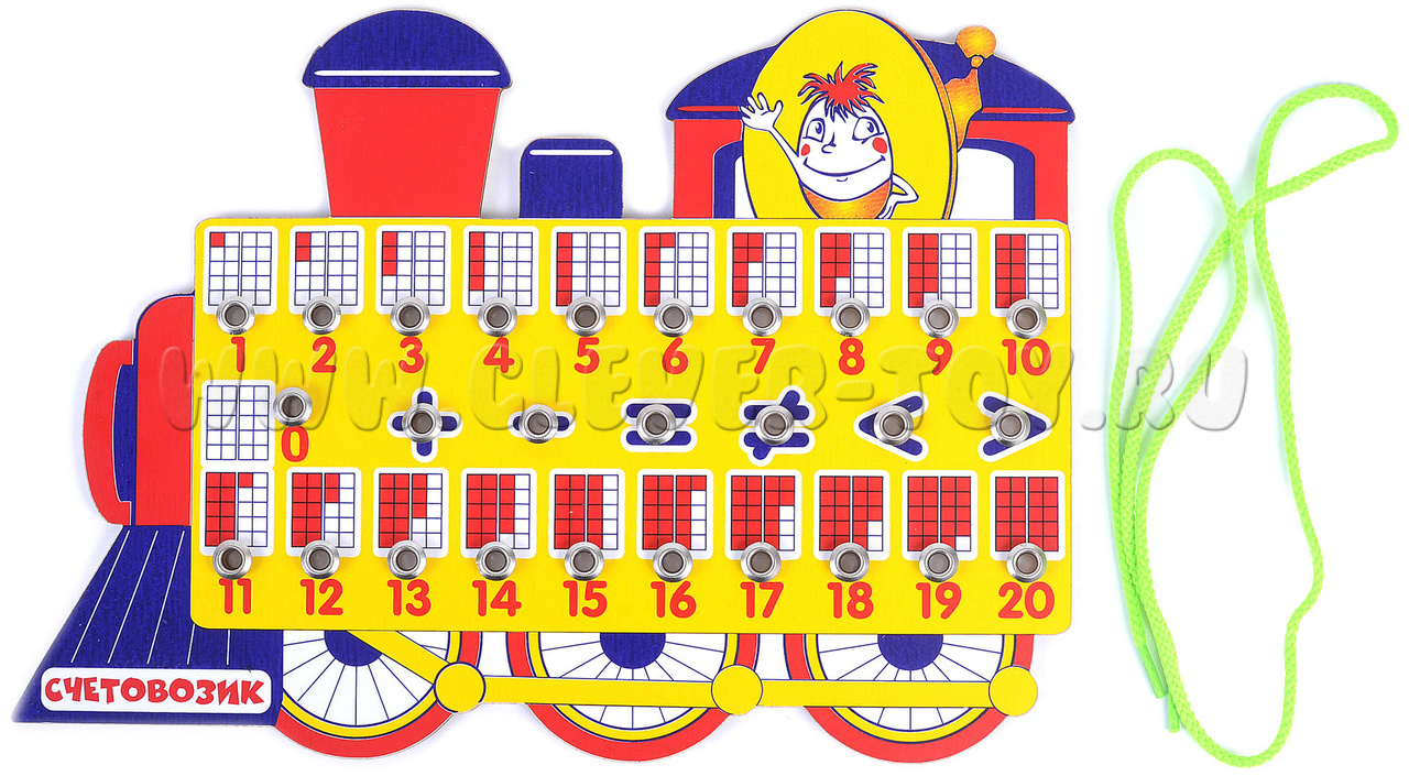 Перед вами уникальное игровое пособие, обладающее волшебными свойствами. Яркий деревянный счетовозик с шнурком и кнопками способен решать примеры, сравнивать числа, а главное – легко и весело изучать математику!