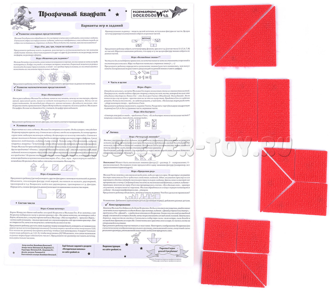 В набор входит также инструкция-подсказка для родителей и педагогов, в которую входит: