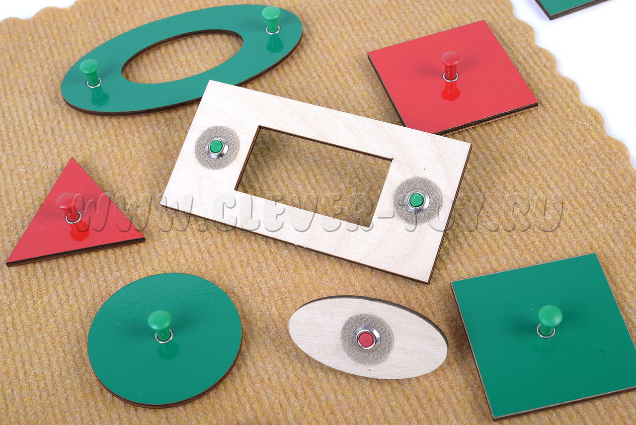 - малыш прикрепляет к игровому полю детали определённой формы (только треугольные, только круглые и т.д.);