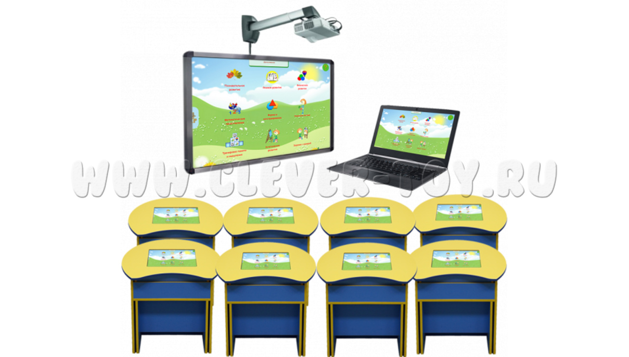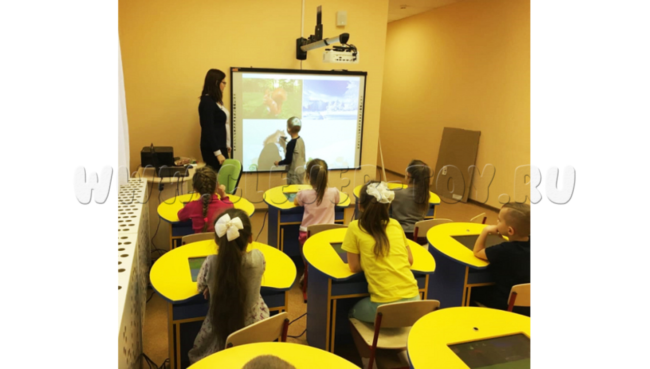 В такой интерактивный класс входит три интерактивные парты, которые подключаются через Wi-Fi к компьютеру или ноутбуку учителя, а также к проектору и к интерактивной доске. Это создает полноценную интерактивную среду, открывающую новые уникальные возможности для проведения уроков!