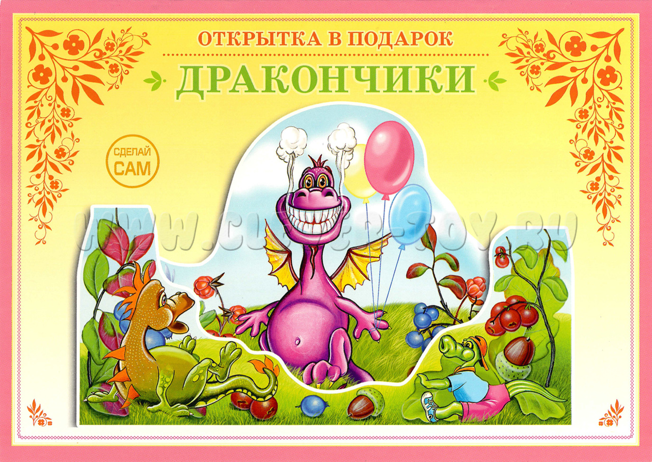 3D объёмная открытка-книжка для детского творчества "Дракончики".