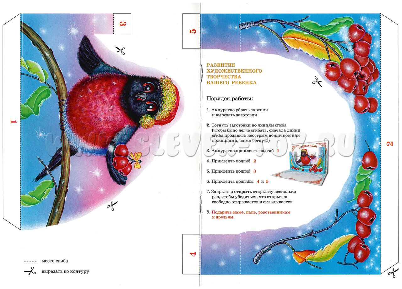 3D объёмная открытка-книжка для детского творчества "Снегирь".