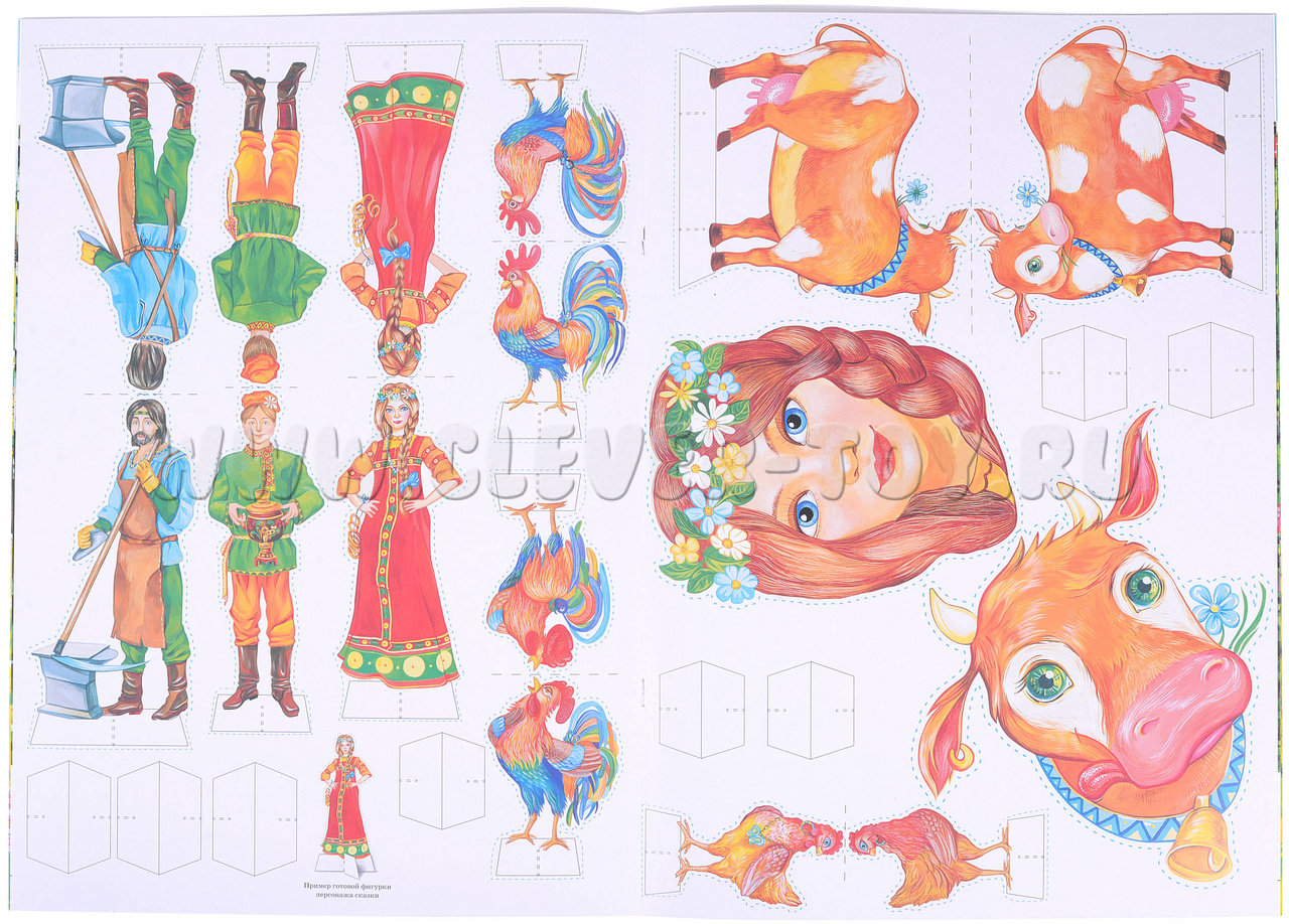 • Фигуры-персонажи 7 шт. выполнены из плотного картона (курочка, петушок (2), хозяйка, хозяин, кузнец, корова);