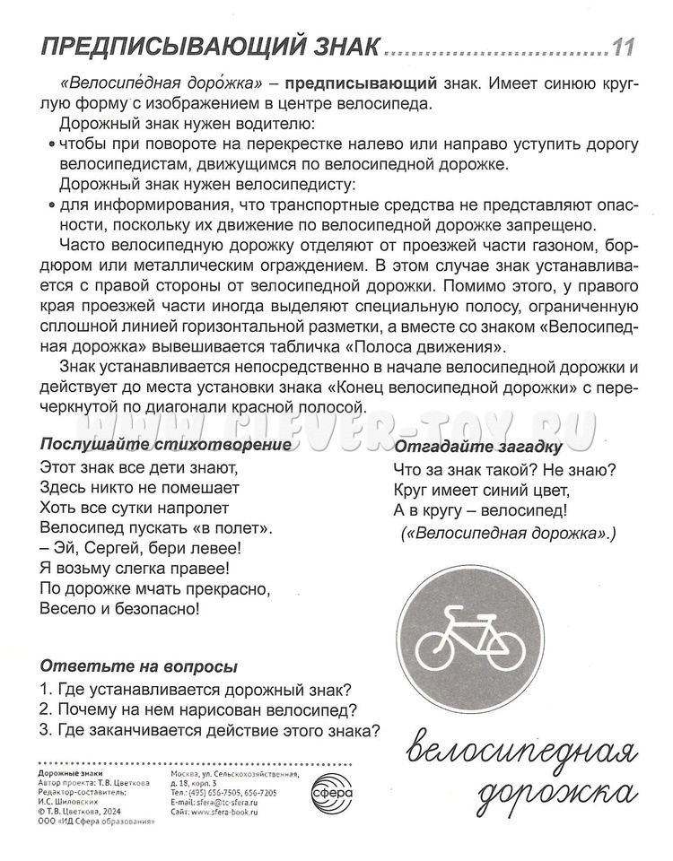 • Предписывающие знаки:"Велосипедная дорожка", "Пешеходная дорожка".