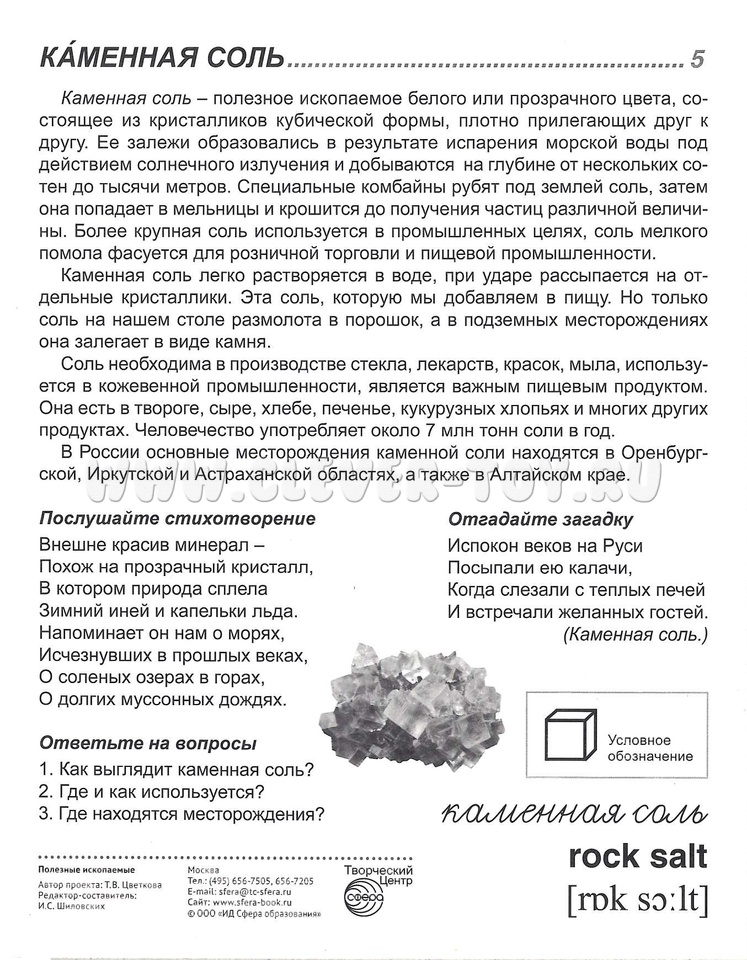 Комплект "Полезные ископаемые" состоит из 16 цветных демонстрационных карточек (картинок) и адресован детям и их родителям, желающим познакомиться с полезными ископаемыми, добываемыми на территории нашей страны.