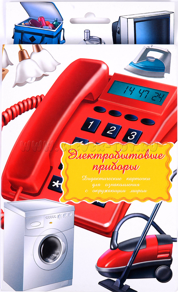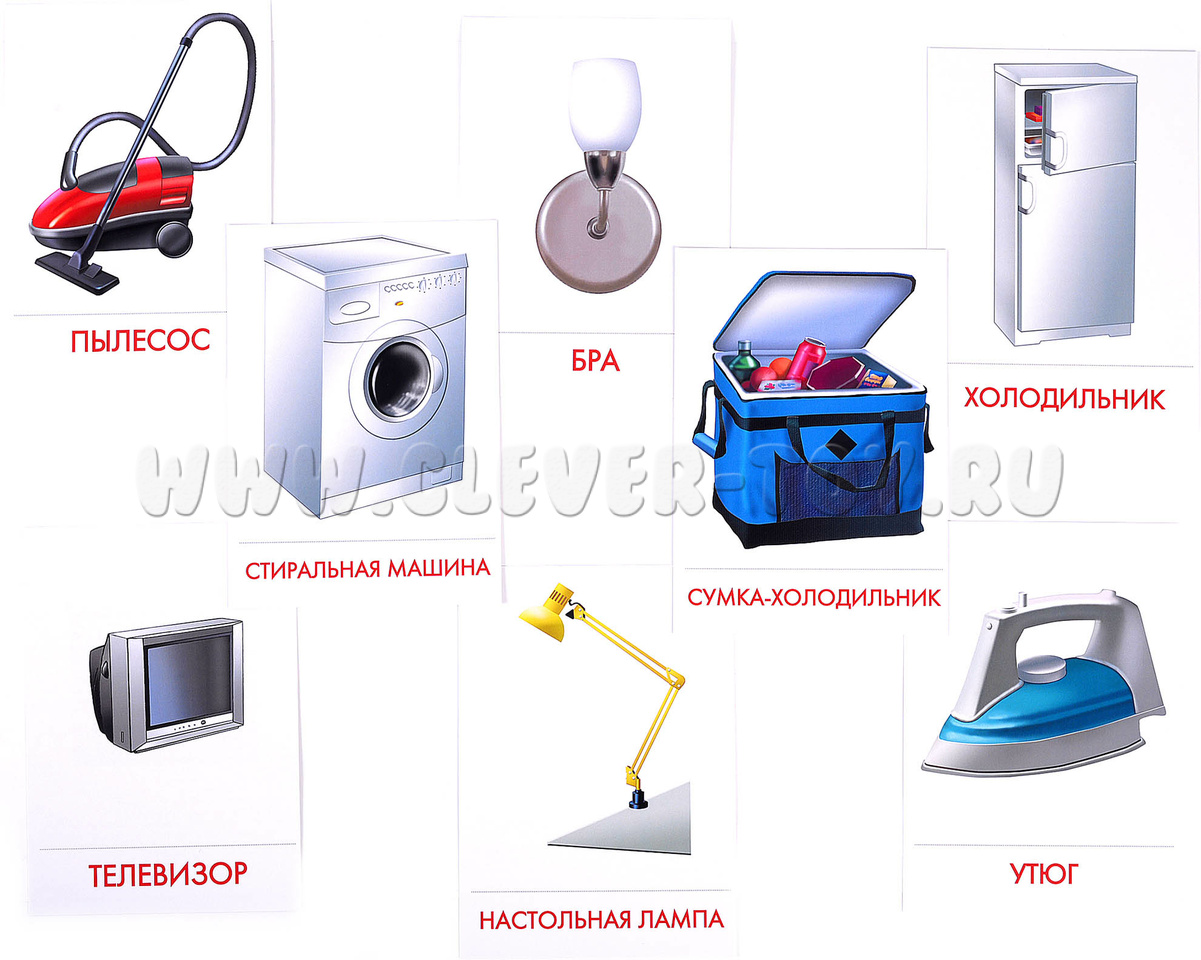 В набор водит 16 карточек с изображениями электробытовых приборов: