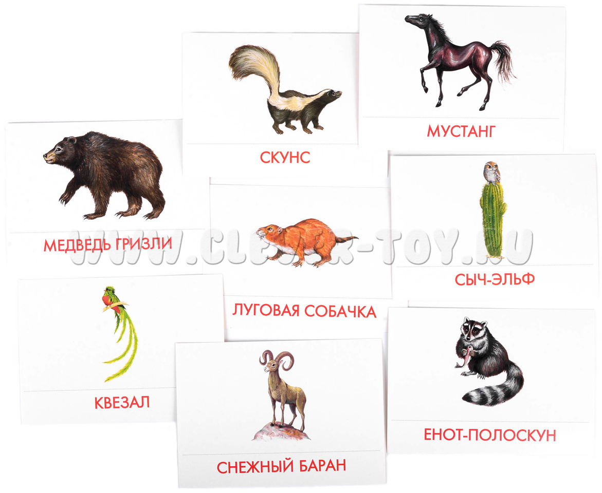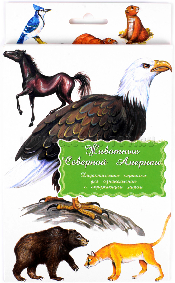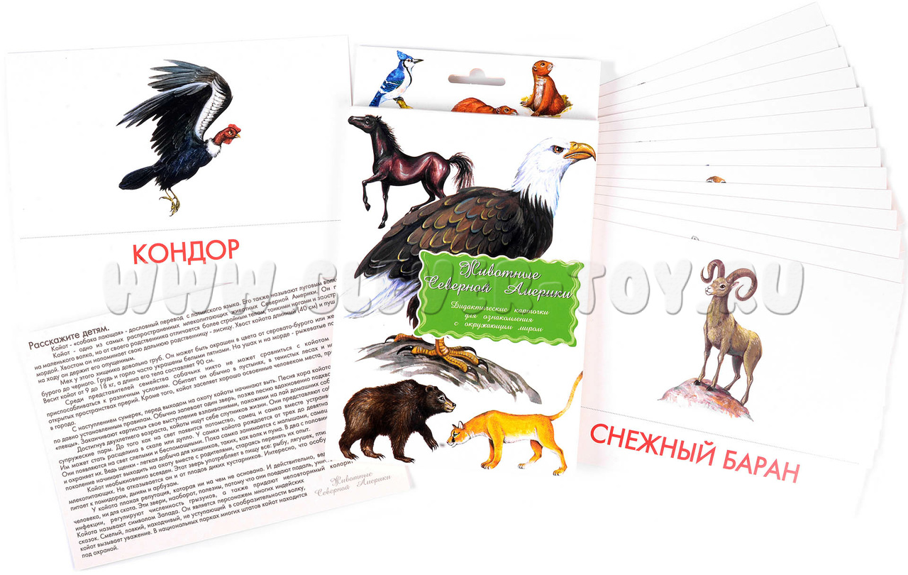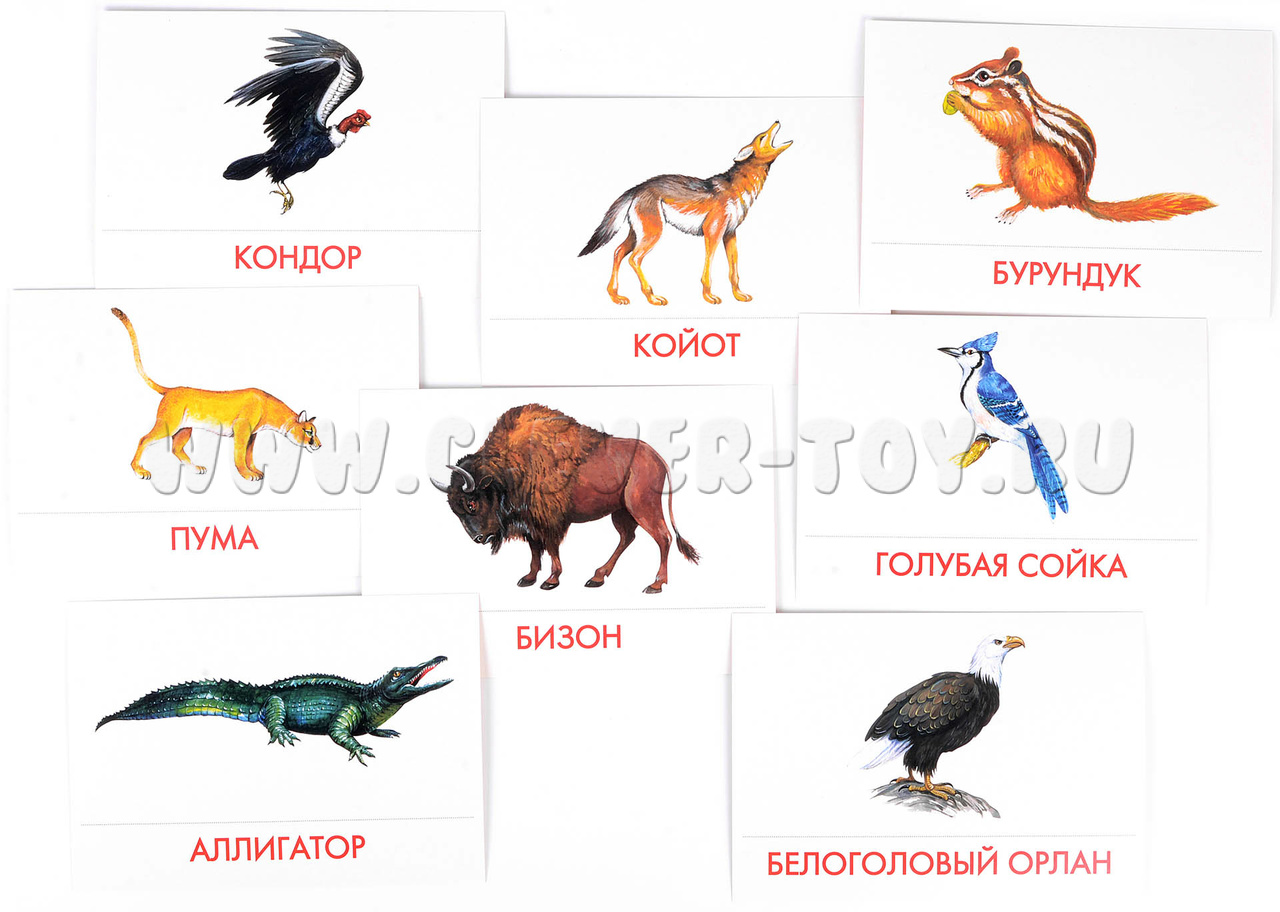 В набор входит 16 карточек с изображениями животных Северной Америки: