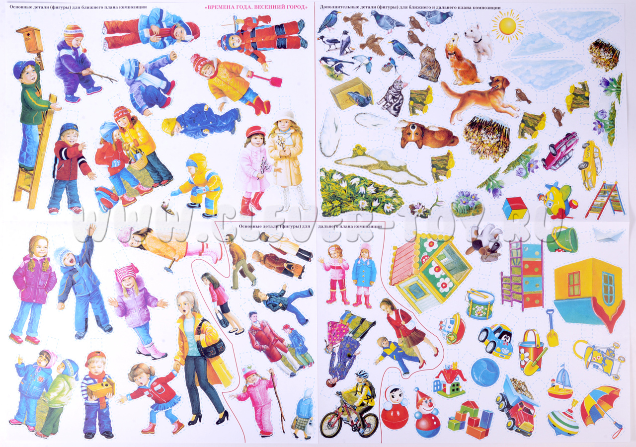 - плакат (А1) с изображением основных и дополнительных фигурок (100-150 штук) для вырезания и наклеивания на сюжетную картину;