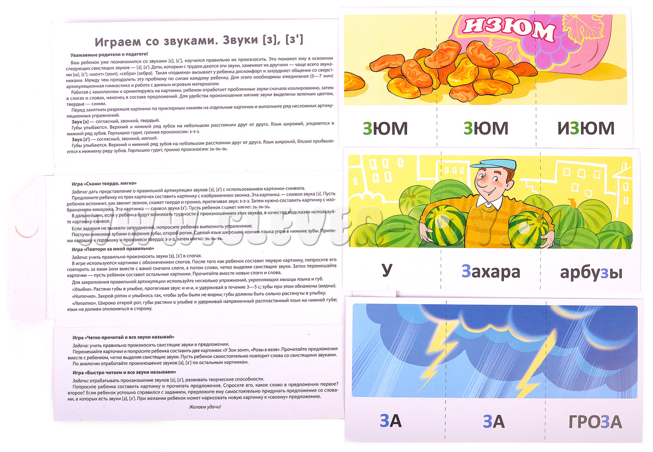 Набор карточек с рисунками. Играем со звуками. Звуки [З], [З'] (учебно-игровой комплект)
