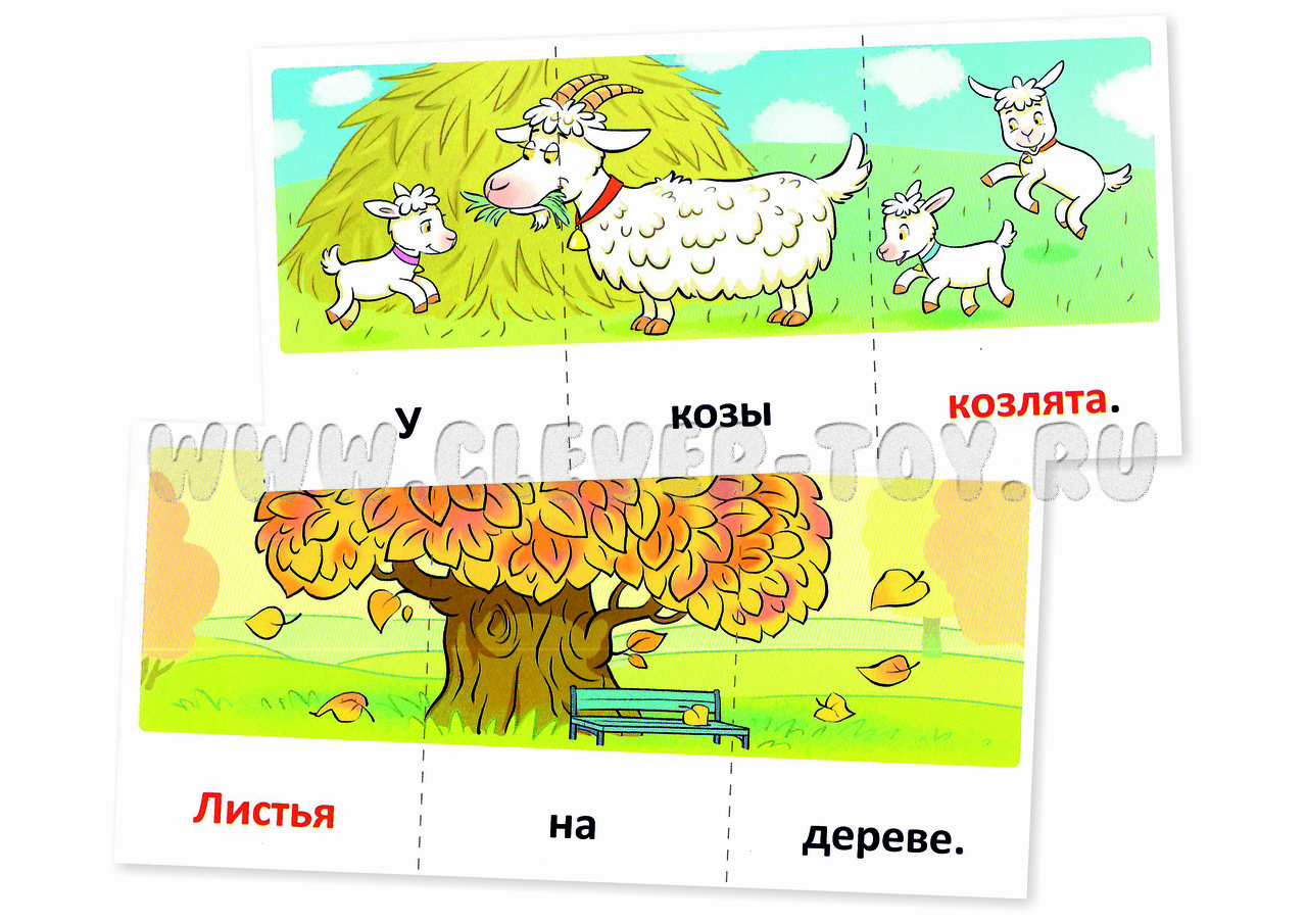 В наборе 12 разрезных карточек размером (21х10 см), из которых получаются 36 карточек размером 7х10см.