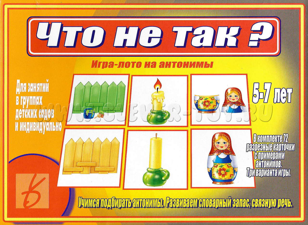 Игра "Что не так" подойдет для организации занятий с детьми старшего дошкольного возраста (5-7 лет) и поможет малышам в развитии связной грамотной устной речи, расширении словарного запаса и освоении новой категории слов – антонимов. Регулярные занятия с игрой поспособствуют развитию зрительного восприятия и визуальной памяти, произвольного внимания, логического мышления.