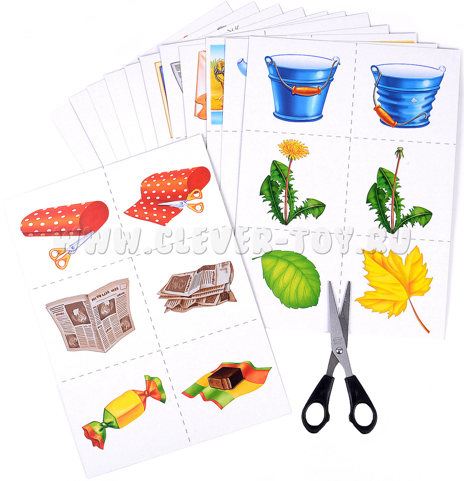 Перед началом игры родителю или педагогу необходимо аккуратно разрезать карты по пунктирным линиям. Получится 72 карточки с картинками. Каждая карточка имеет пару. Всего в наборе 36 карточек "прямое значение" – "антоним".