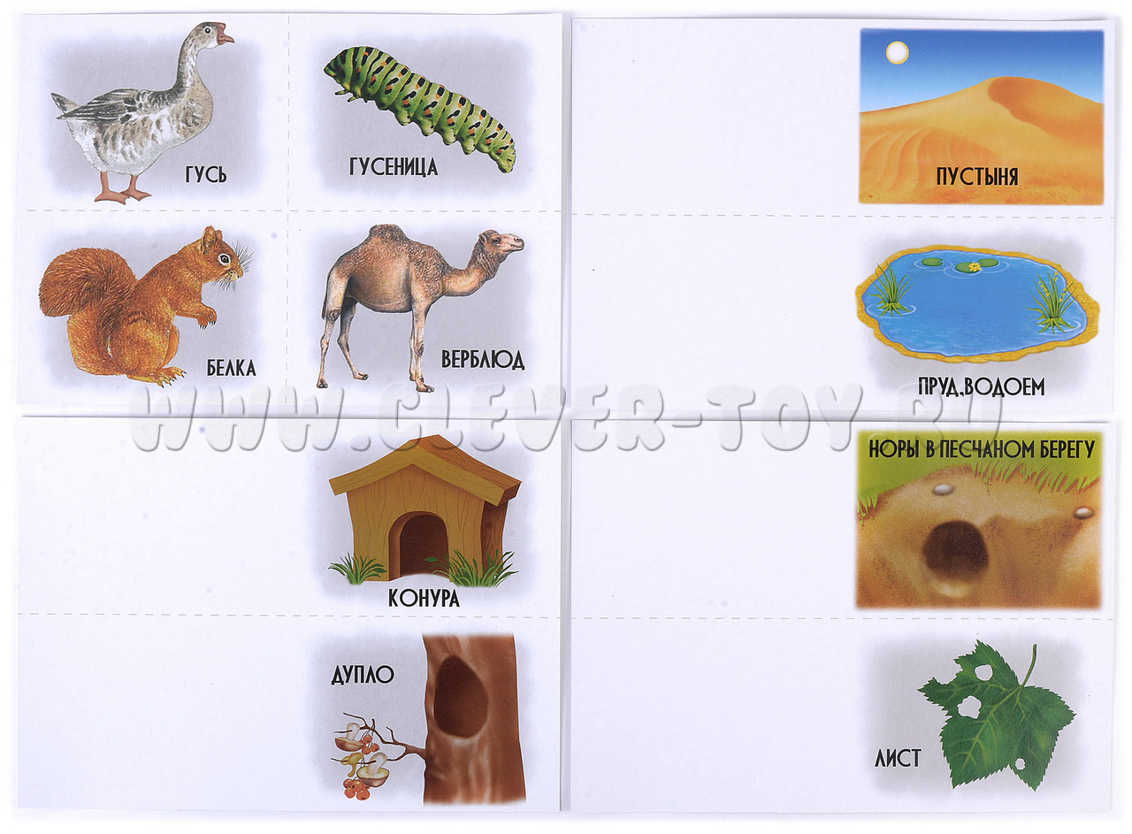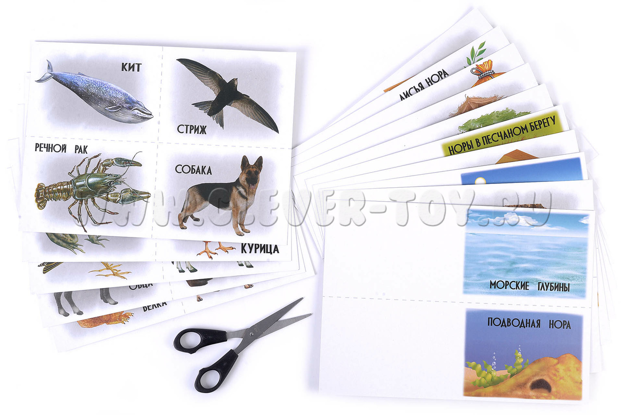 Эта развивающая игра-лото дополнит знания ребенка о живой природе, поможет сформировать гуманное отношение к животным. Возрастная группа: 4-6 лет. Перед началом игры требуется разрезать карты по пунктирным линиям (получится 20 карточек с животными и 20 с местами их обитания).