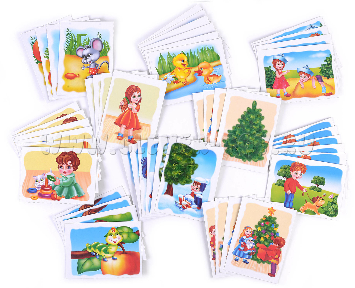 1. сочинение историй с участниками картинок, во время которого малыш узнает и запоминает новые категории (названия домашних животных, времен года, мест и т.д.) и признаки, им характерные, расширяет представления об окружающем мире и учится использовать имеющиеся и новые знания в процессе мышления;