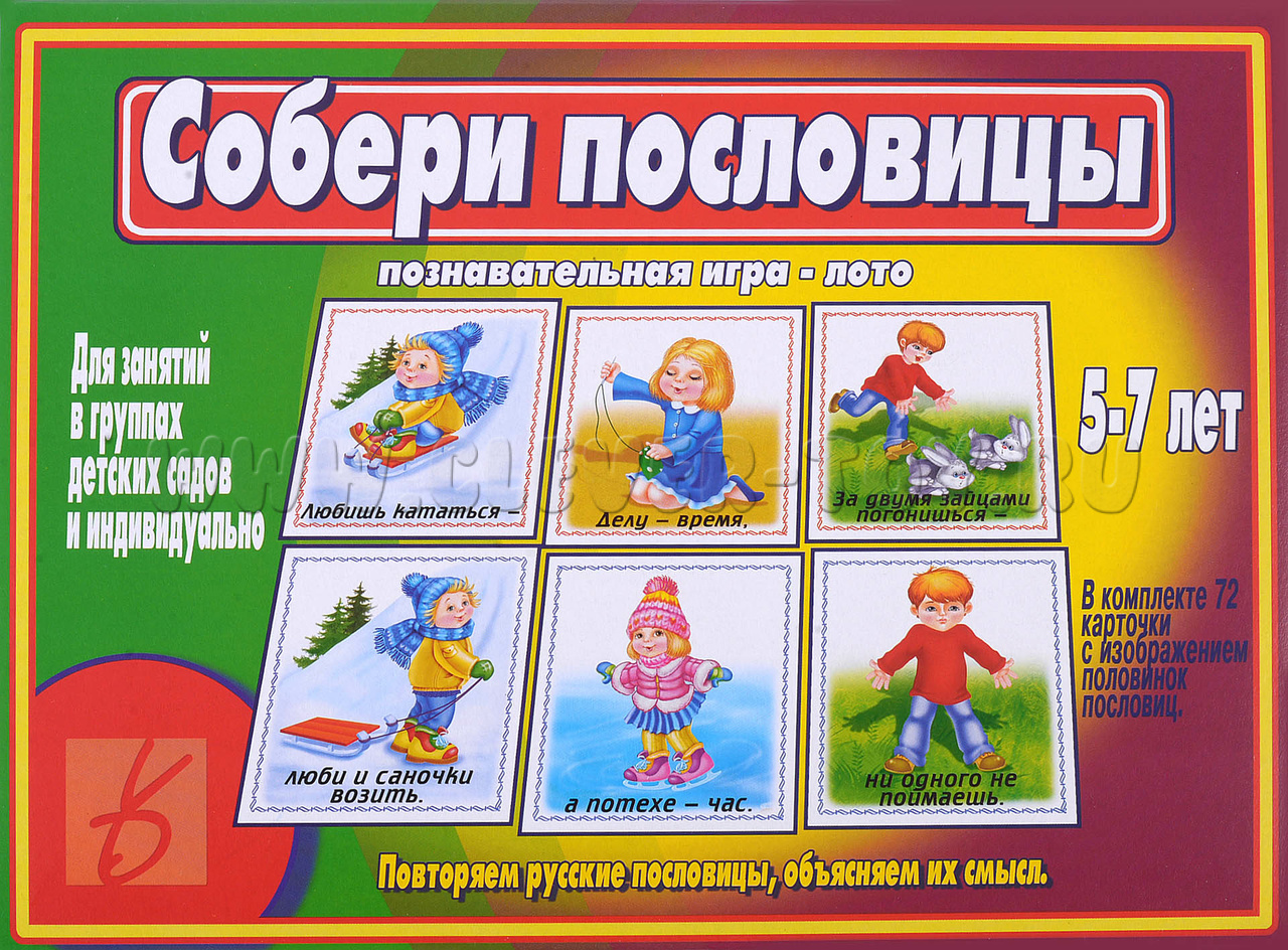 Игра-лото для детей 5-7 лет.С помощью этой игры дети повторят русские народные пословицы,и научатся объяснять их смысл.