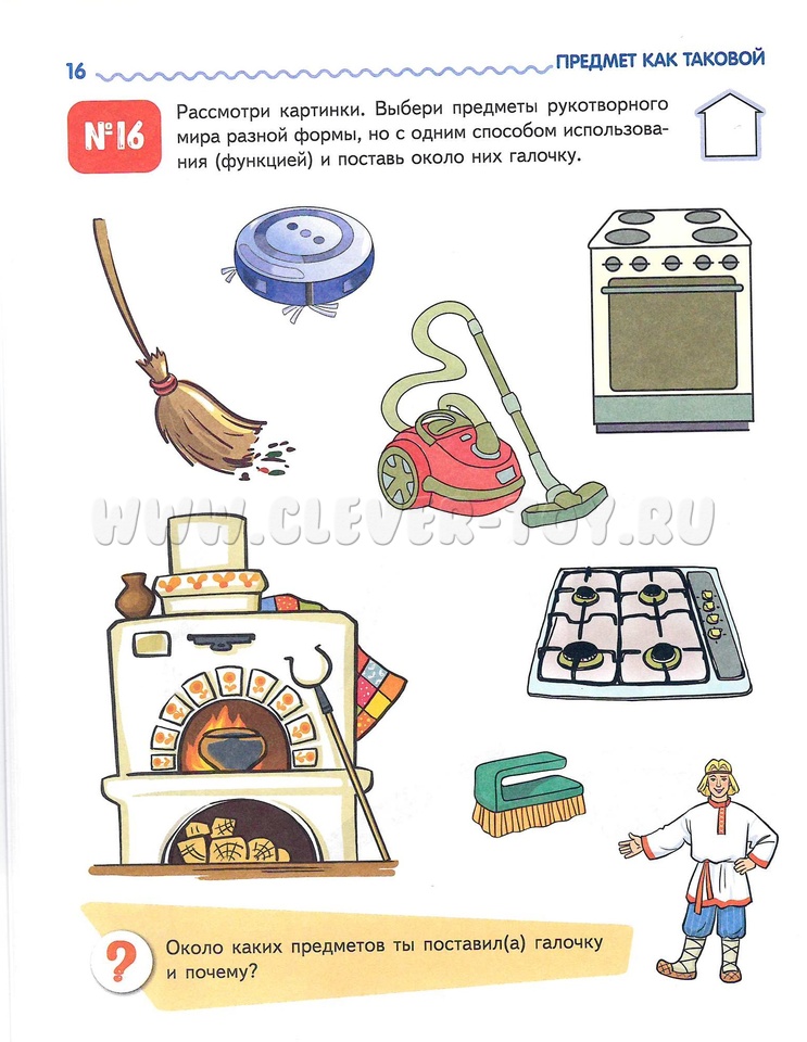 Тетрадь содержит игровые упражнения и задания, направленные на познавательное развитие детей 6-7 лет. В процессе выполнения заданий дети размышляют, уточняют представления о предметном мире, обогащают сенсорный опыт и осознают, что все предметы созданы человеком и их назначение определяется человеческой мыслью.