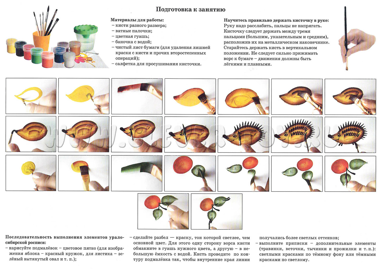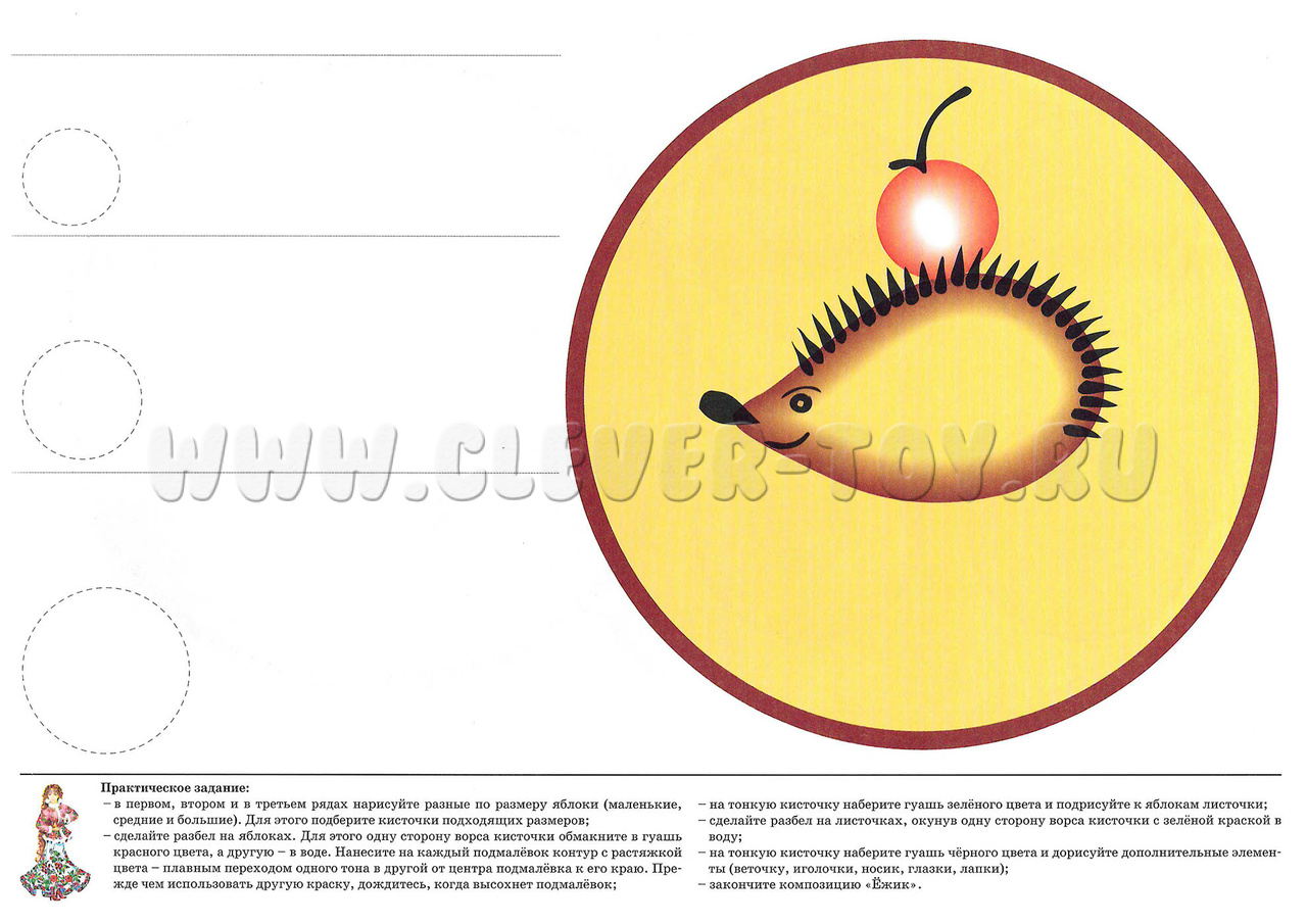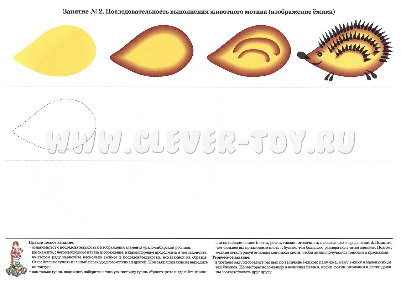 • Последовательность выполнения животного мотива (изображение ежика);
