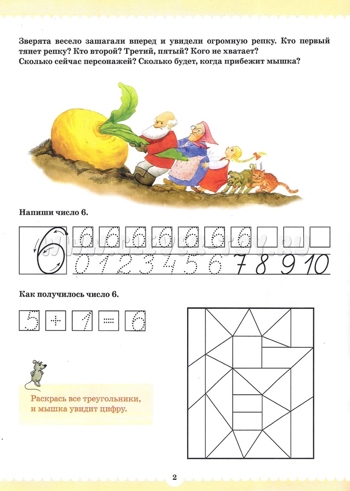 Вместе со сказочными персонажами Рыжиком и Пушистиком малыши, путешествуя по разным сказкам, закрепят знания цифр, вспомнят их последовательность в числовом ряду, познакомятся с составом чисел из двух меньших, узнают про сложение и вычитание, про математические знаки, научатся решать простые задачки, писать цифры.