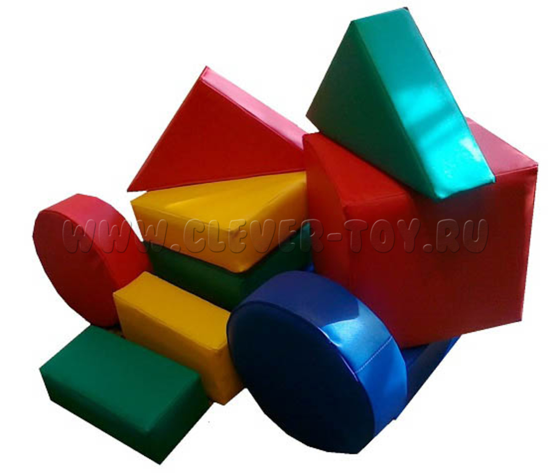 Комплектация: куб 30*30*30 - 1шт. прямоугольник 60*30*10 - 1шт. круг D30*H10 - 2шт. прямоугольник 30*15*10 - 2шт. треугольник 30*30*10 - 2шт. квадрат 30*30*10 - 2шт.