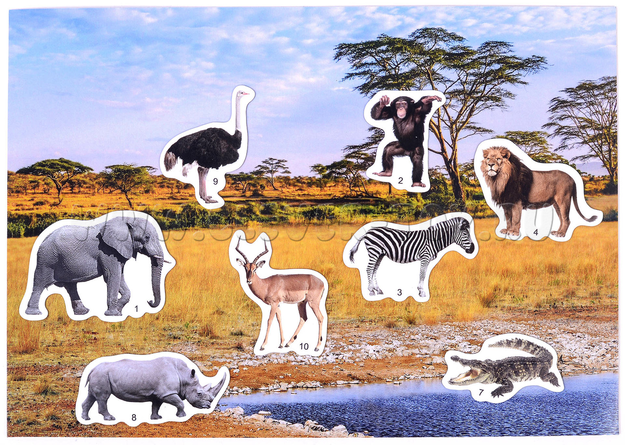 Перед началом игры обязательно выясните, знает ли ребёнок изображённых в пособии животных. Расскажите ему о них, их месте обитания и основных отличительных признаках.