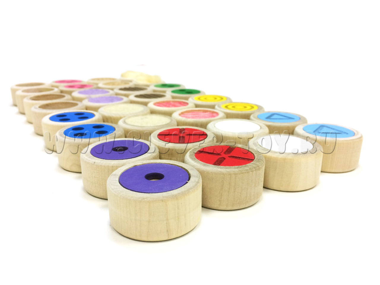Игра для развития тактильных ощущений. Цель игры - найти на ощупь пары цилиндров с одинаковой поверхностью. В комплект входят: 32 деревянных цилиндра (16 пар), мешок.
