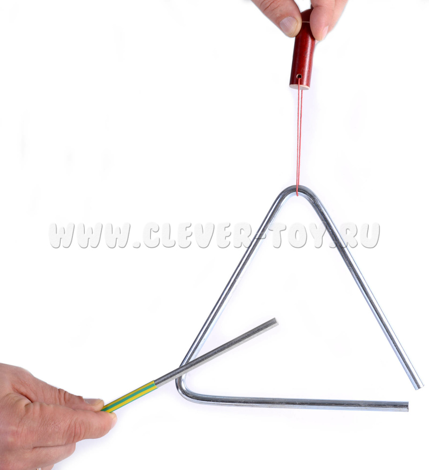 5 музыкальных треугольников (длина стороны - 10, 12, 14, 16, 18см) с качественной тембральной окраской, благородным и певучим звуком (до 20 секунд).