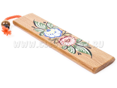Колотушка с росписью для самых юных музыкантов представляет собой деревянный брус размерами: 140 мм х 30 мм х 5 мм. В верхней части бруса посредством капронового шнура крепится бусинка диаметром 16 мм. На сторонах в 140 мм нанесена роспись. Материал: бук, береза.