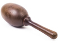 Погремушка представляет собой пустотелый деревянный предмет яйцеобразной формы. Внутрь погремушки засыпана охотничья дробь. В нижней части погремушки крепится фигурная ручка токарной работы. Материал: липа.