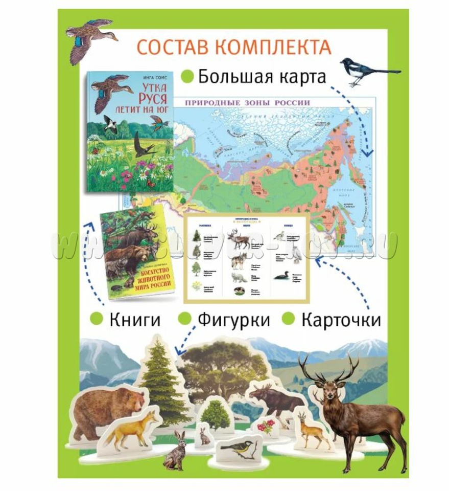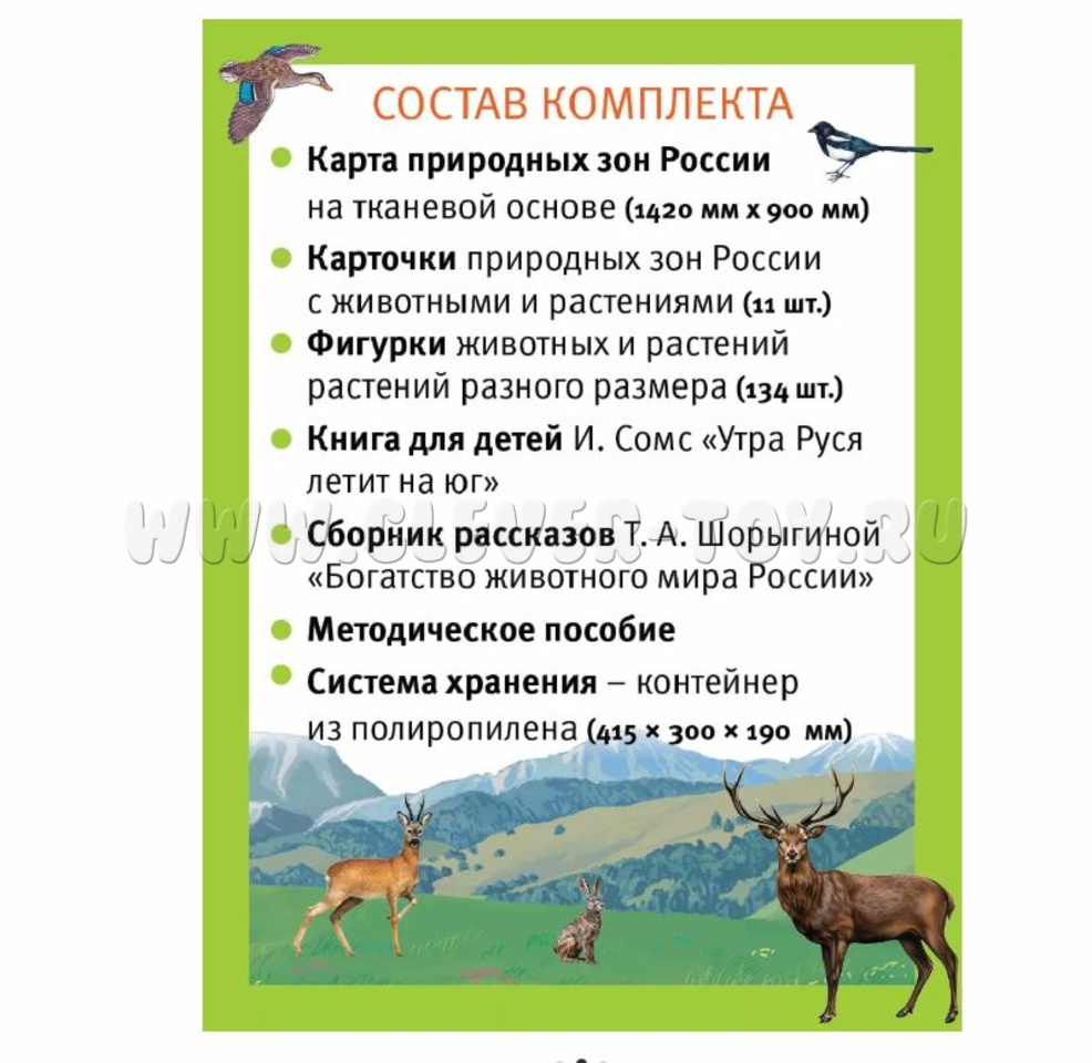 Уникальный комплект о животном и растительном мире России для проведения занимательных заданий и развивающих игр.