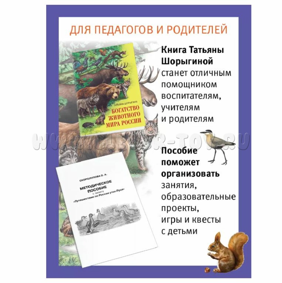 - Пособие Татьяны Шорыгиной "Богатство животного мира России" (Мягкая обложка, Черно-белая печать, 144 страницы, Размер: 21*14 см).